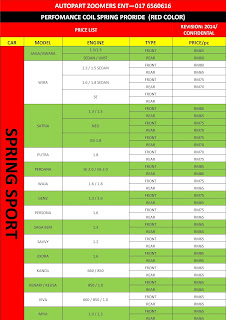 BERIKUT ADALAH SENARAI HARGA ABSOBER & SPRING PRORIDE SEBAGAI RUJUKAN ANDA !